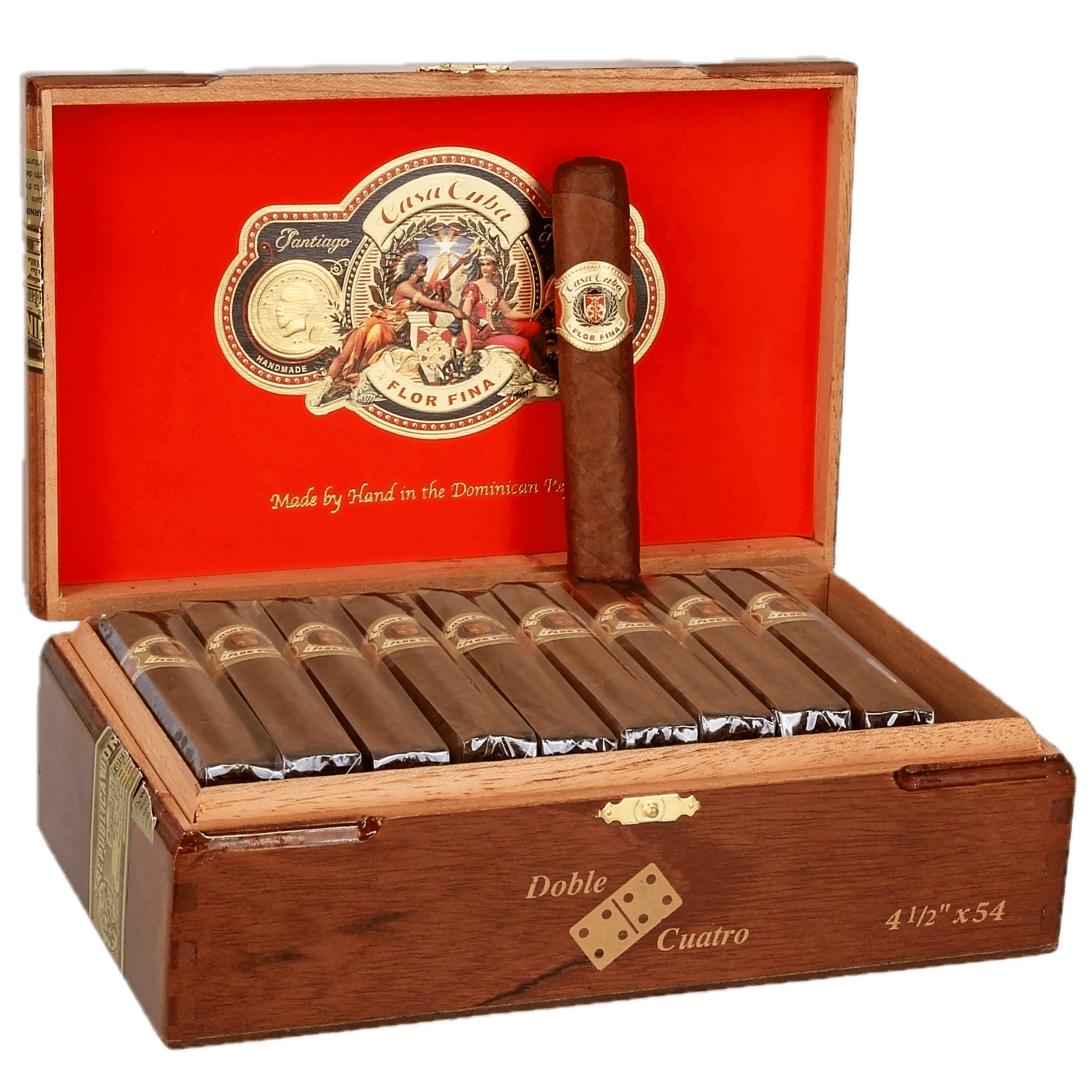 - A legacy of vintage style: From the burgundy packaging to the historic cigar band, every Doble Cuatro is a tribute to the family's illustrious history. In today's trend towards extra-large ring gauge cigars, this cigar retains its rare refinement and aristocratic air.